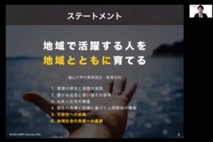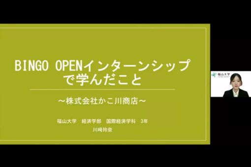 備後地域の4大学(福山大学、福山平成大学、福山市立大学、尾道市立大学)が連携して実施した「2021年度 BINGO OPEN インターンシップ」の締めくくりとなる「合同成果報告会」を2月5日(土)にオンラインで開催しました。