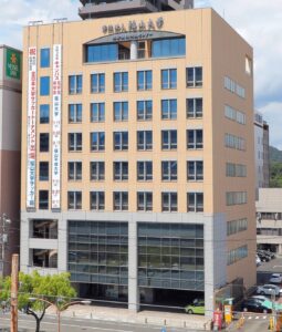一昨年来からの新型コロナウイルス感染症の拡大・まん延によって、予定していた集中講義の日程変更でやっと実施にこぎ着けました。3年生を含めて全学生は本学の感染症対策によって、今年の1月中旬頃から、対面での授業が制限されていました。受講場所は、本学の通称・駅前キャンパス(学校法人福山大学社会連携推進センター)でした。JR福山駅北口から徒歩3分と交通至便の好立地です。