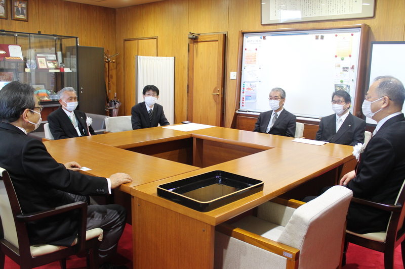 「博士(薬学)」とは、高度な専門性、能力、人間性を身につけた者で、将来の医療薬学を支える指導者、教育者、研究者であることを証明するものであり、これまでの業績を認めて今後のさらなる発展、貢献を期待するものです。今、まさにその博士となり、晴れ晴れとした表情の岡田博士でした。学長室では大塚学長、鶴田副学長、平副学長とともに、学位論文の概要説明や完成までの苦労話に暫し花が咲きました。