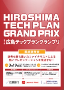 先月の3月19日(土)にリーガロイヤルホテル広島にて「第2回広島テックプラングランプリ」(主催:広島銀行・株式会社リバネス)の最終選考会が開催され、これまで明らかにしてきた研究成果をもとに、社会の抱える課題をどう解決していくかに関してプレゼンテーションしてきました。ちなみに、この会合は新型コロナウイルス感染症に対する徹底した感染対策が実施された中で開催されました。