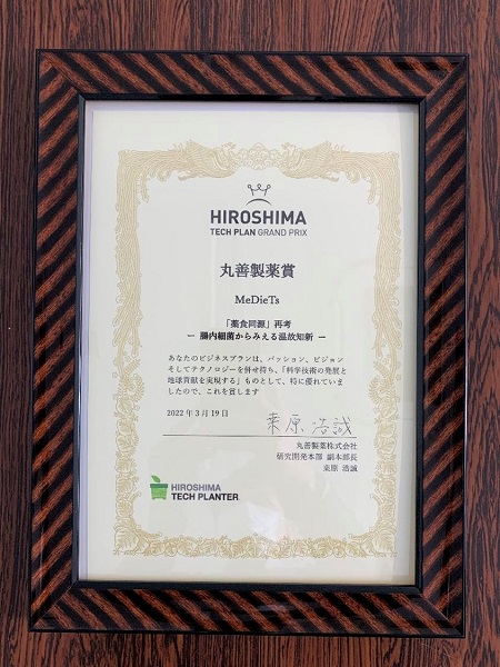 その結果、丸善製薬様から私のプランに共感いただくことができ、この度「丸善製薬賞」を頂戴することとなりました。