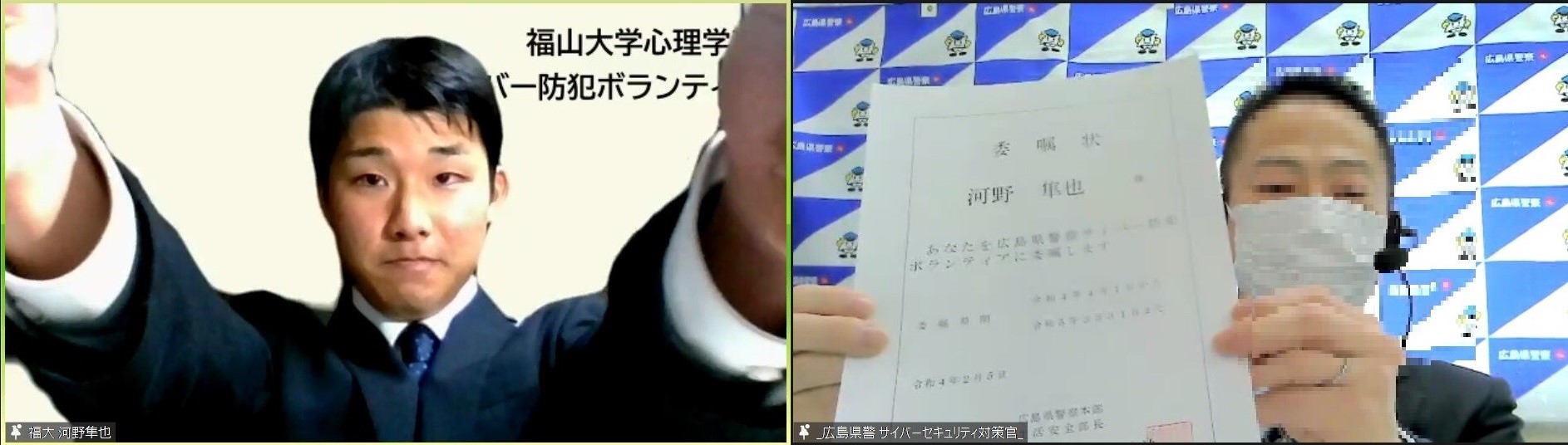 【心理学科】広島県警によるボランティア委嘱式でCyPat FUが大役を務めました!