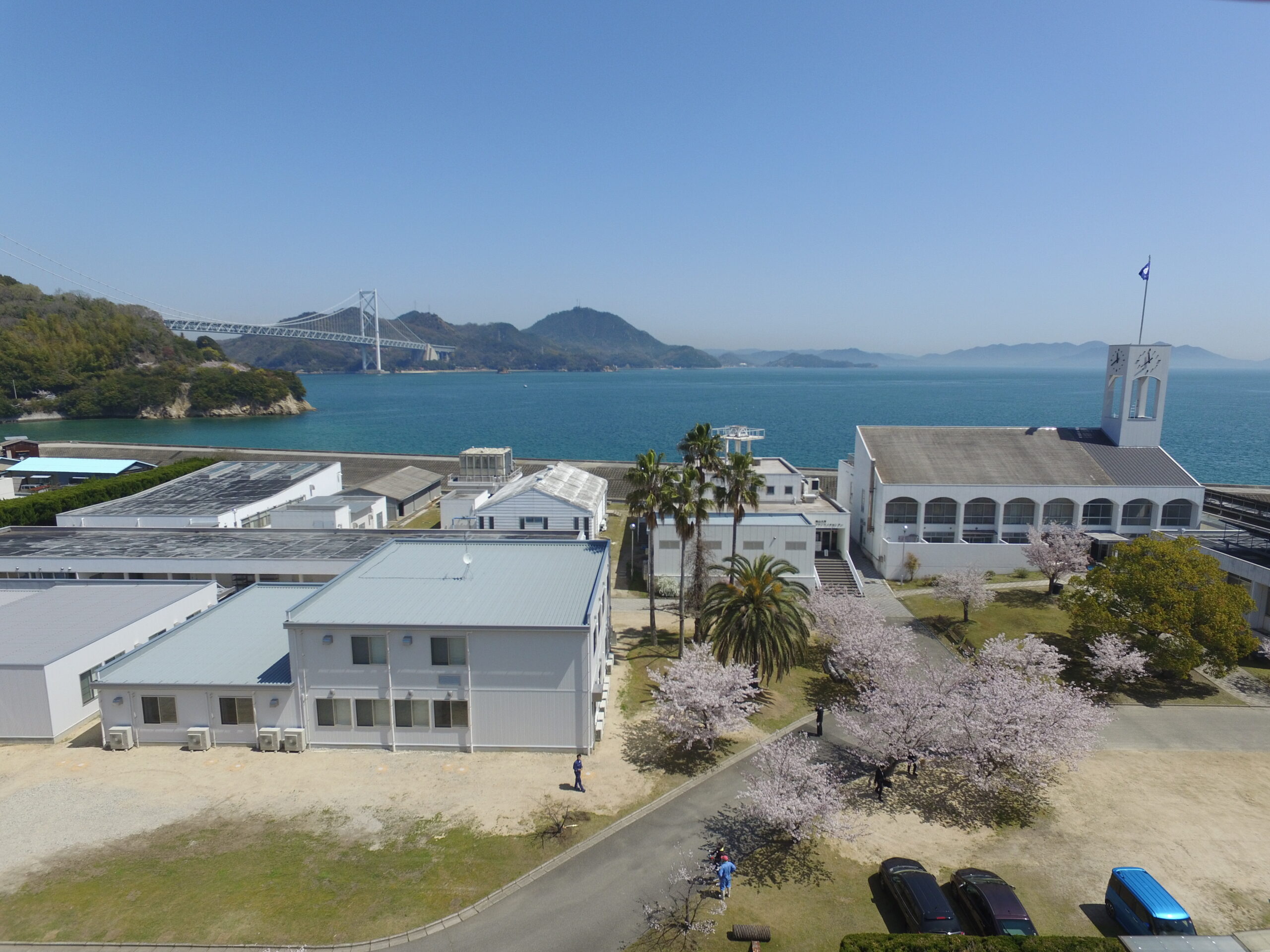 福山大学因島キャンパス・内海生物資源研究所。眼前に瀬戸内海が広がります。