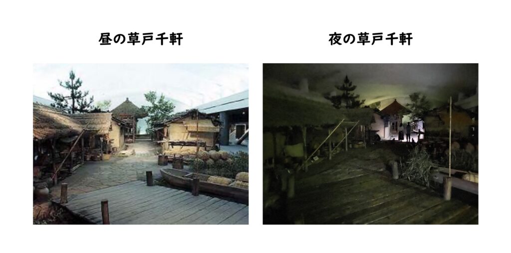 このお化け屋敷は、なんといってもロケーションや雰囲気が格別です。草戸千軒の町並みを実物大で復原した博物館内の草戸千軒展示室「よみがえる草戸千軒」でおこなうナイトミュージアムの催しです。そして、お化け屋敷の内容の時代考証は博物館が行い、お化け屋敷の仕掛けは心理学科の学生が「犯罪心理学の不安研究の知見(どういった事・場所で私たちが不安や恐怖を感じるのか)」を逆手にとり考案します!