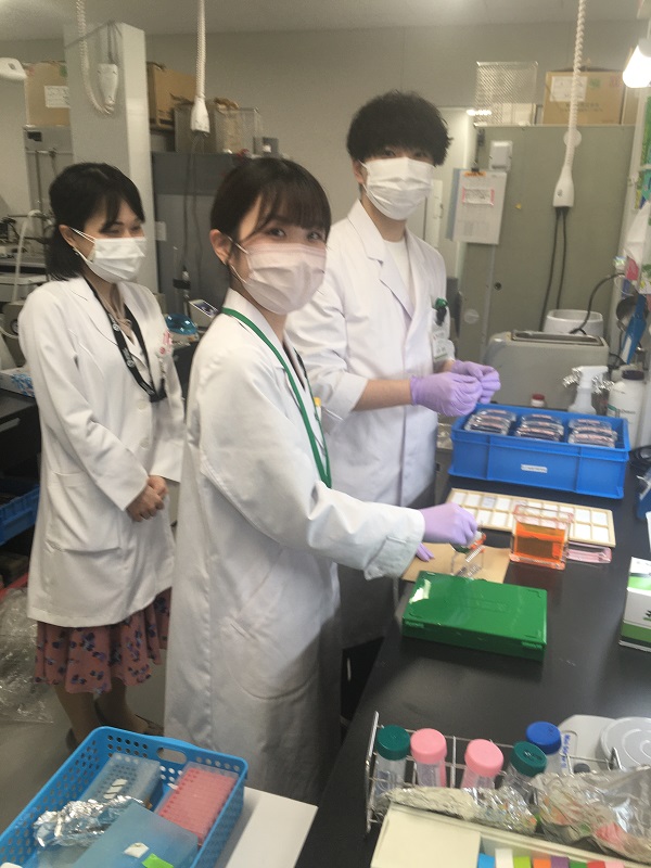 山脇さん:私は、今できることを最大限に頑張りたくて、最先端の実験に触れることのできる分子免疫学研究室を希望しました。多くの解析機器に囲まれながら、日々、新たな実験系を学ぶことができております。学会発表を目指して頑張ります。