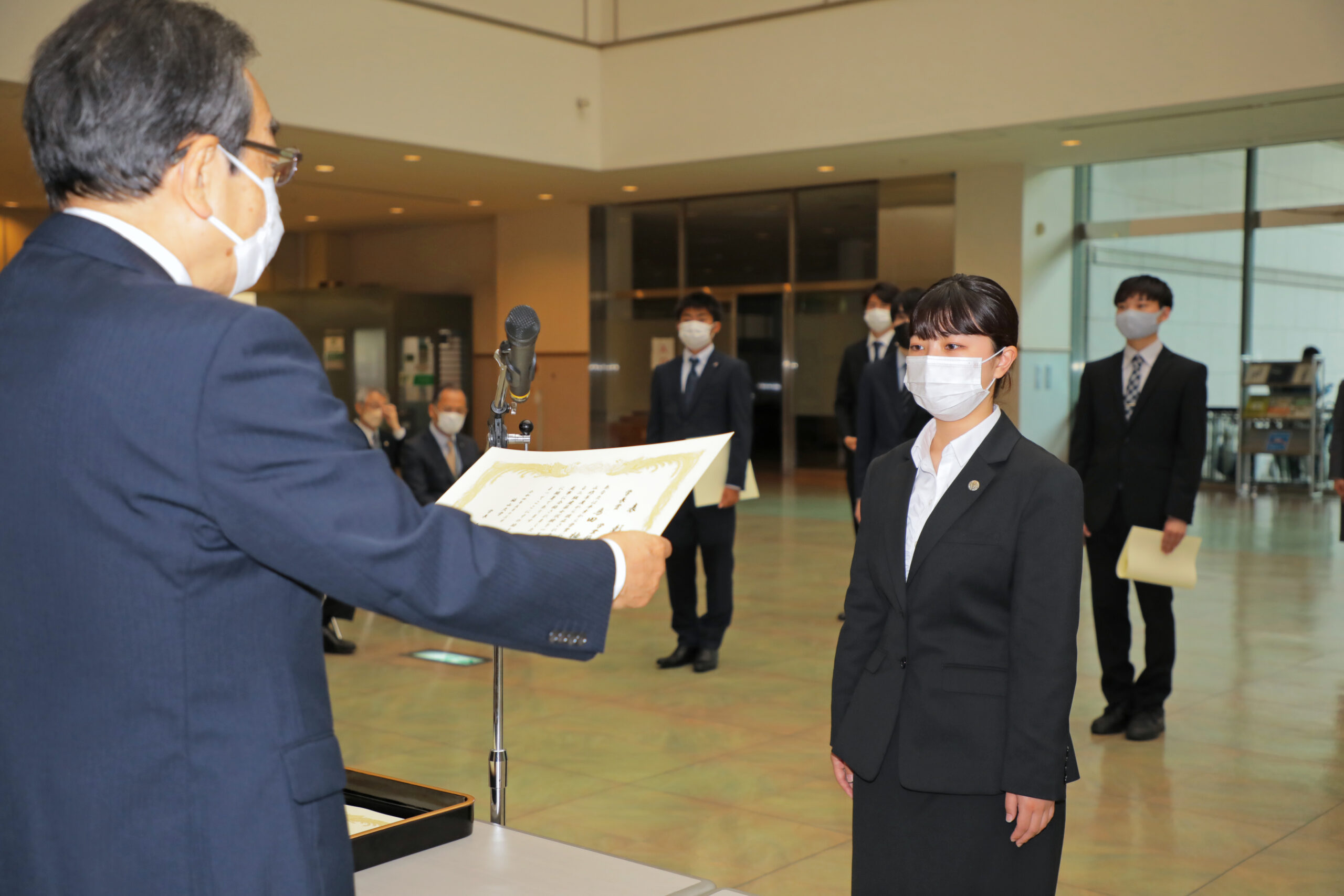 令和3年度冬の学生表彰」の表彰式につきましては、新型コロナウイルス感染症の影響を受け、未実施のまま今年度を迎えておりました。5月13日(金)のお昼休みに三密を避けながら、ようやく実施しましたので、当日の様子について、学生課の門田がお伝えします。