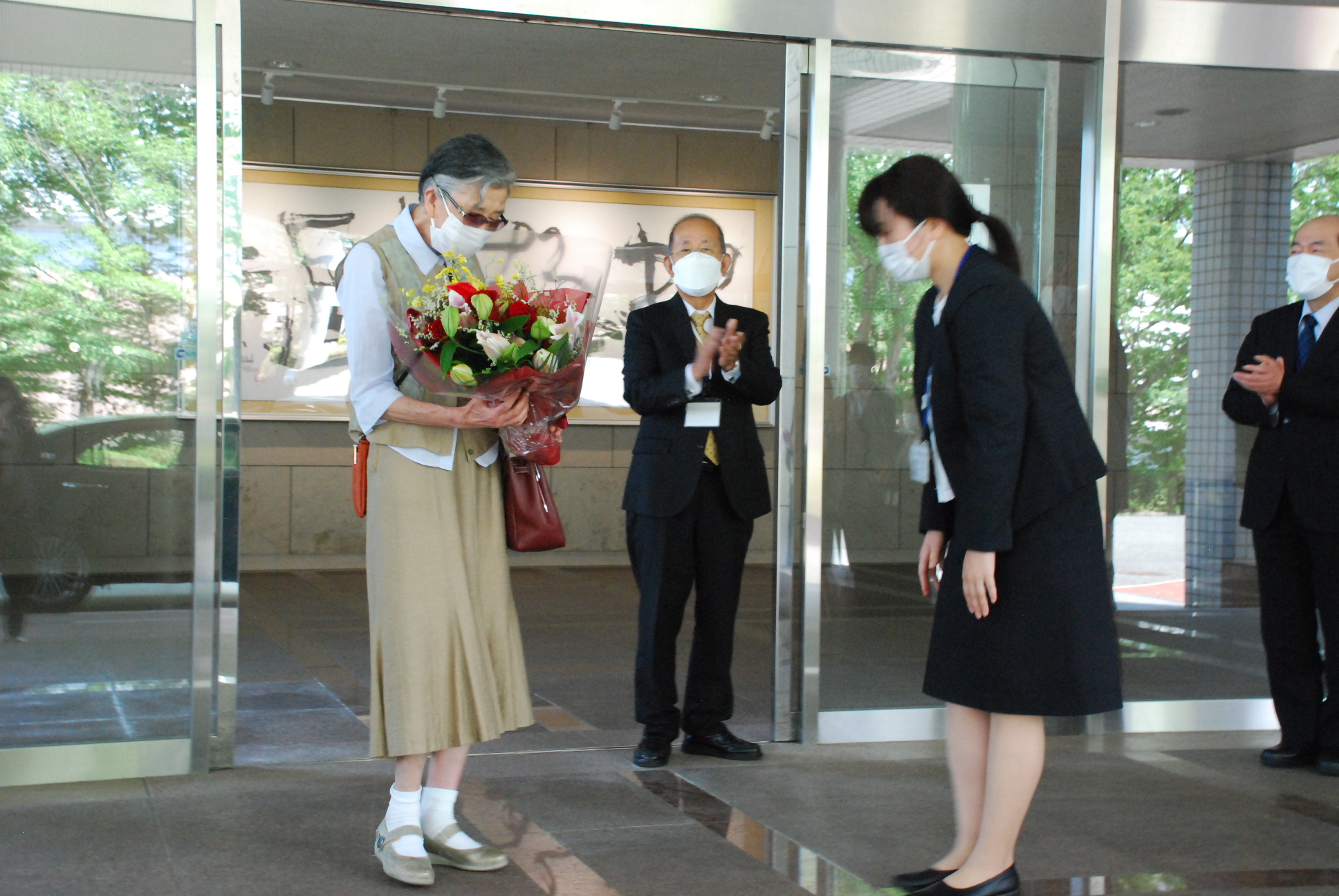 学長から一言:私たちが敬愛して止まない松田文子前学長は、私の学長就任以来の1年余り、顧問としての立場で、新米をなにくれとなく助けて下さいました。長い年月にわたった学長としての豊富な経験に基づくアドバイスは、痒いところに手が届くという表現がぴったりな事ばかりでした。改めて深甚なる感謝の意を表したいと思います。これから始まる人生の1章がさらに幸多きものとなることを心から願っています。