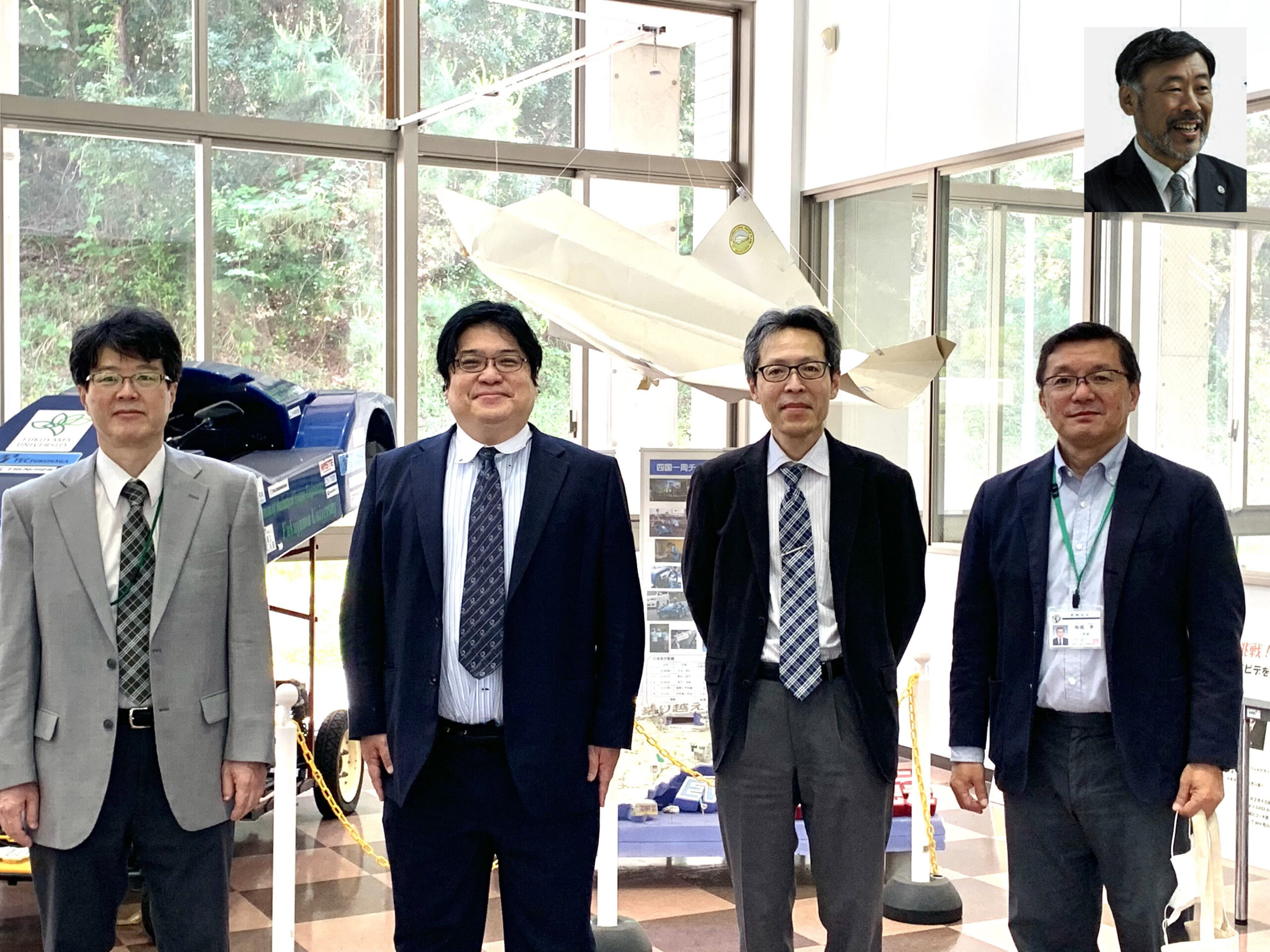 加藤工学部長(左から3人目)とスマートシステム、建築、情報工、機械システム工学科の学科長の皆さん