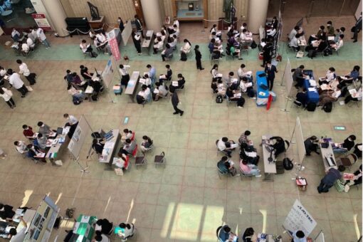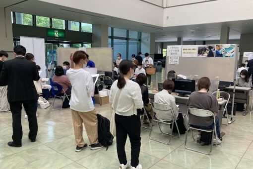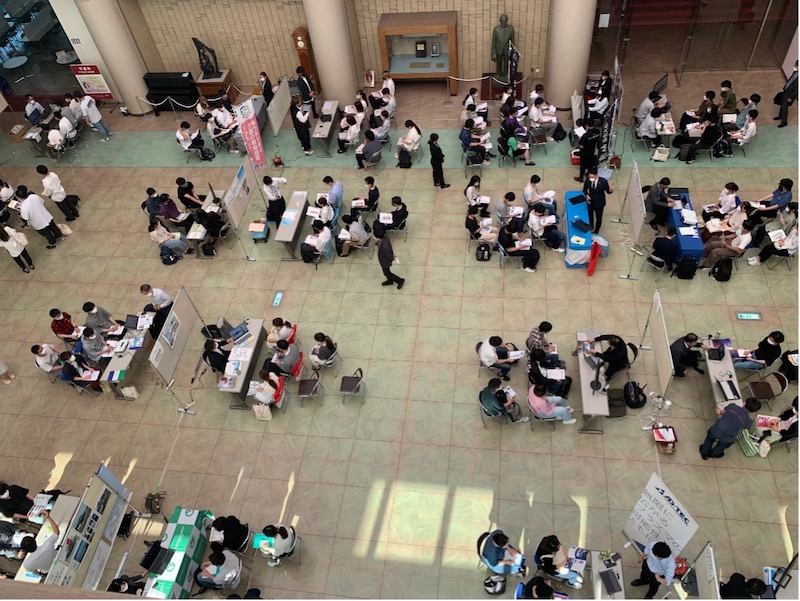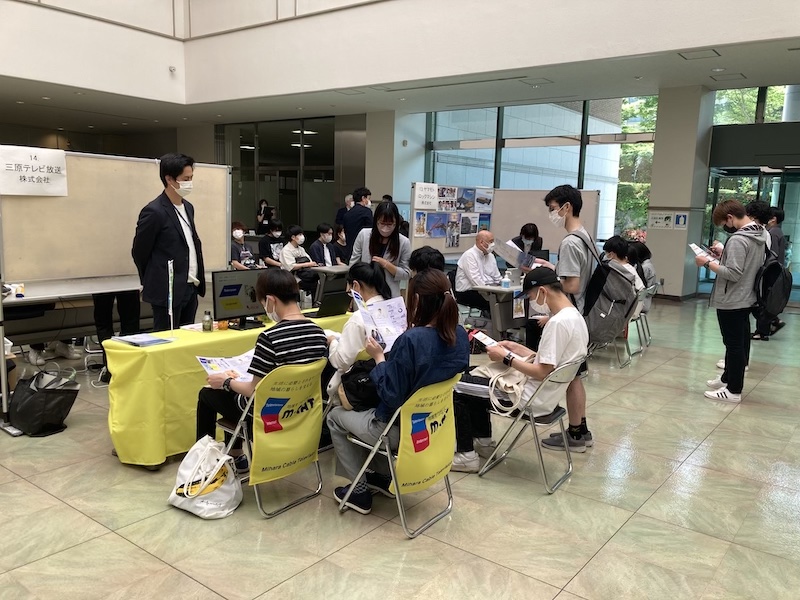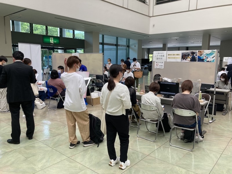 この日は、業務の関係で直接会場にお運びいただくご都合がつかなかった企業の方がリアルタイム・オンラインで対応してくださいました。結果として、この度の合同企業説明会はハイフレックス開催となり、新しい合同企業説明会の在り方にも挑戦することができました。