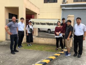 高速道路を南へ進み、ラグナ州サンタロサにある広い工業団地へと向かいました。豊ファインパックは本社が福井県越前市の企業であり、2013年からフィリピンでも操業しています。今年の1月に赴任された橘マネージャー、オペレーター2人、総務1人、ドライバー1人の計5人の体制をとっています。会社は高品質の包装資材を生産して日本へ船便で送っています。やはり、フィリピンに進出している村田製作所は特に重要な取引先です。
