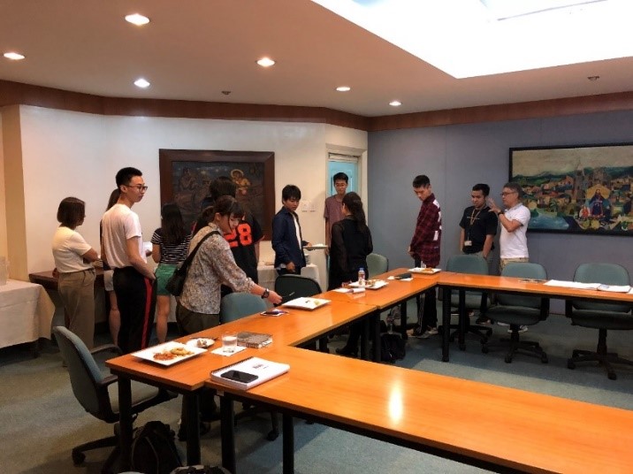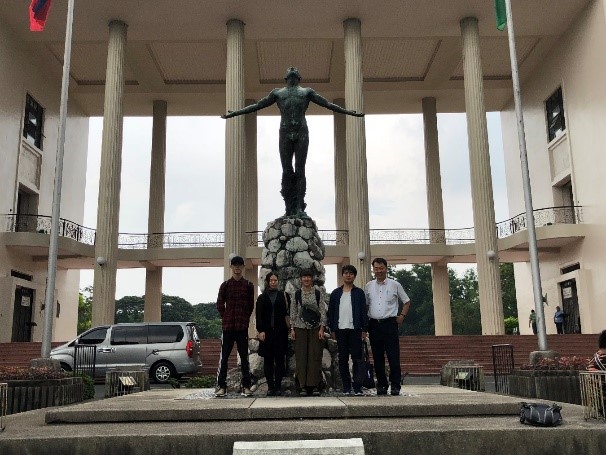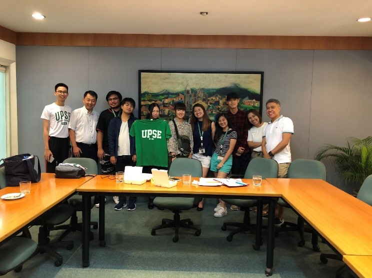 フィリピン大学は、フィリピンの伝統ある国立大学です。経済学部のAgustin Arcenas准教授、経済学部事務室のRose San Pascualさん、経済学部のStudent Councilのメンバーの学生グループが我々を歓迎してくれました。自己紹介後、昼食を一緒にいただきながら交流の時間を過ごしました。学生グループは、経済学部の図書館をまず案内してくれました。その後、皆で車に乗って広大なキャンパスのツアーに出かけました。とても快活で親切な学生たちでした。