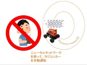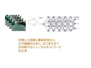 収集されたデータをクラウドコンピュータ(インターネット上にある大きなコンピュータサーバ)に送信し、そこで自動運転を行うためのニューラルネットワーク(神経細胞の結合をまねた学習可能な入出力機構)を作成します。
