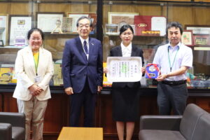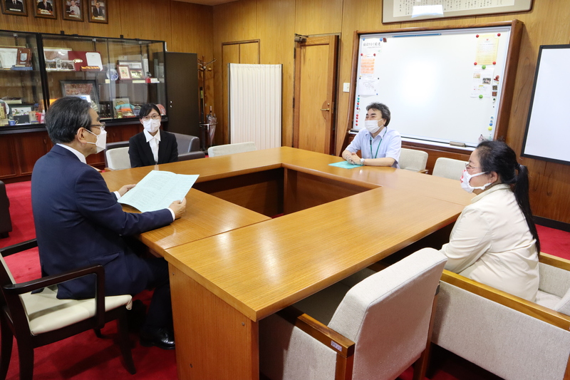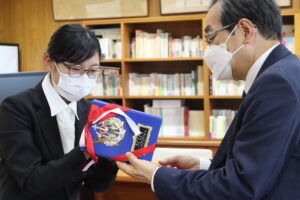 7月4日(月)、吉岡さんの青少年表彰受賞の報告に井上敦子薬学部長、道原、吉岡さんの3名で学長室を訪問しました。