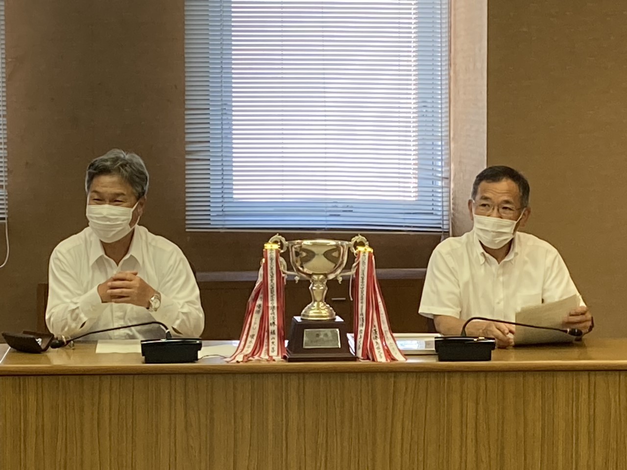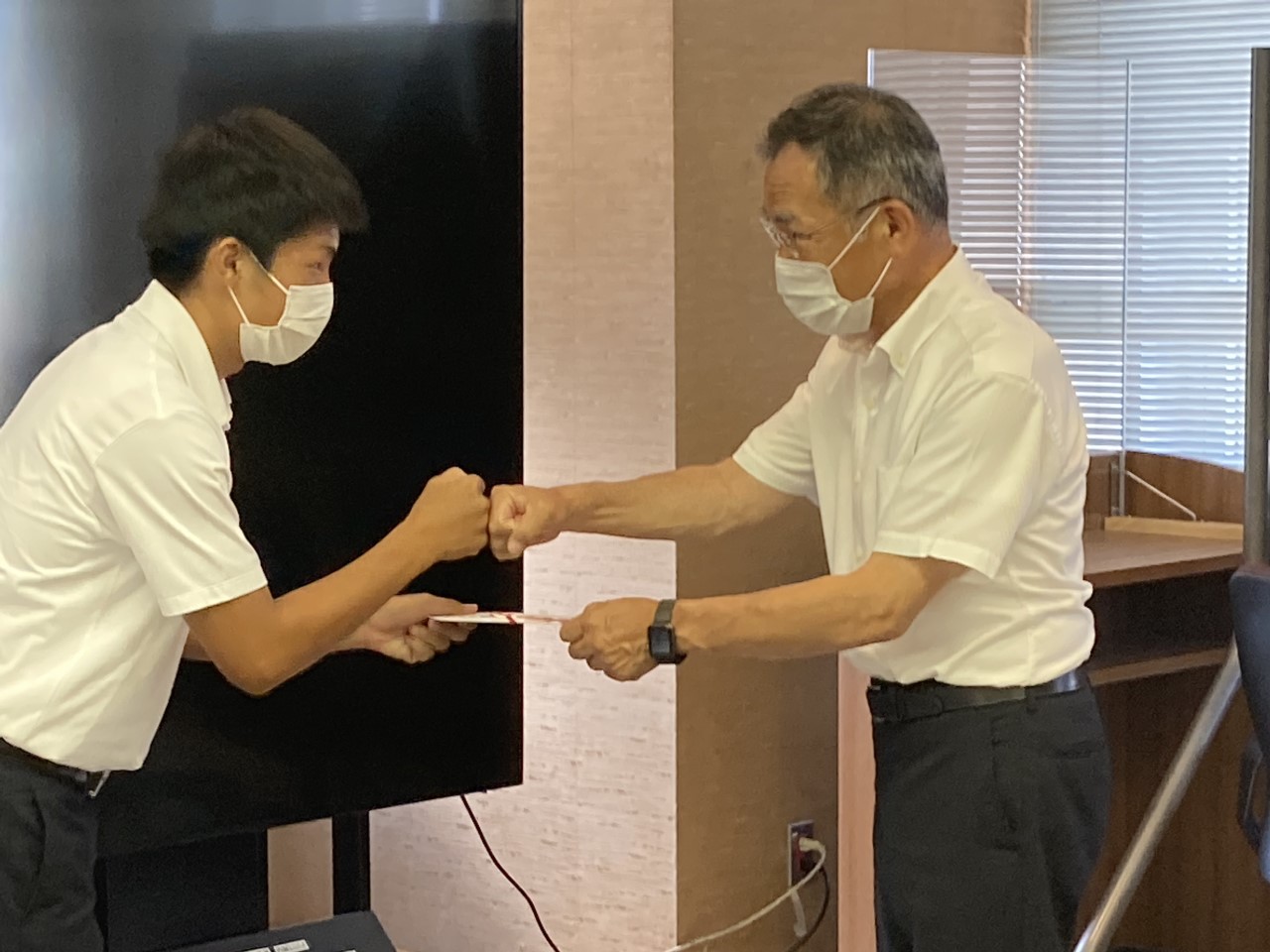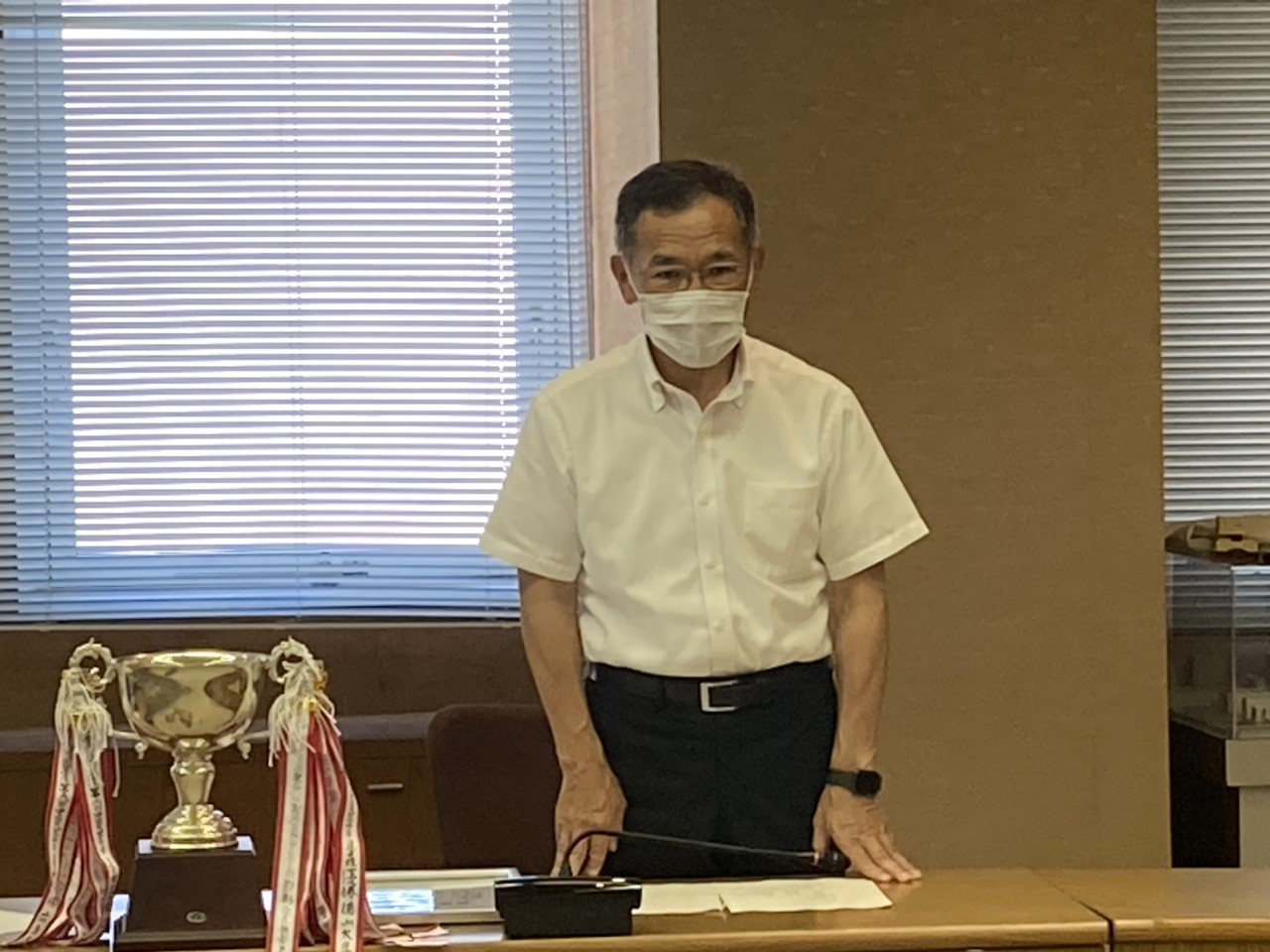 そして、枝廣市長より激励のお言葉をいただき、畠中主将へ激励金が贈呈されました。
