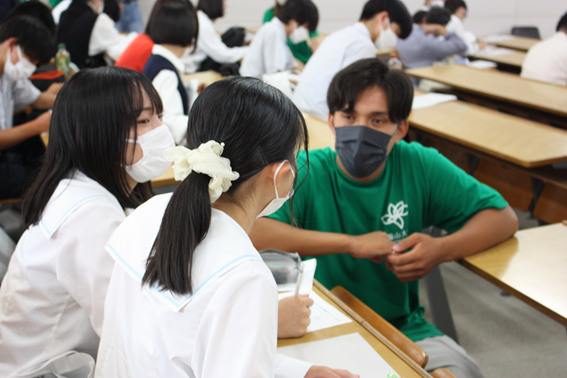 昨年度のオンライン開催と違って、顔が見える大勢の前で話すのは緊急しましたが、高校生の反応を見ることができ、やりがいがありました。グループワークやフリートークでいろいろな話ができて、とても楽しかったです。