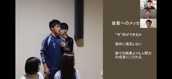3年生の來山航太朗くん「当日参加した10名だけでなく、動画撮影・編集、卒業生へのインタビュー、グループ分けの準備など裏でサポートしてくれた同級生や先輩方の助けもあって成し遂げたオープンキャンパスだったと思います。」