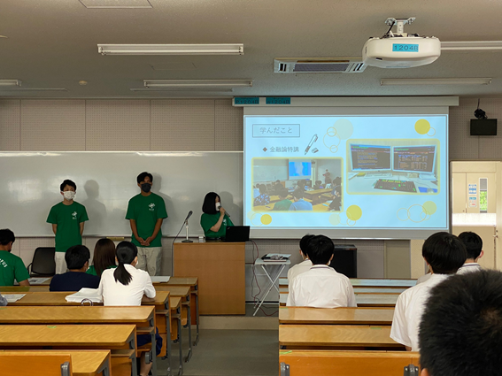 私たち4年生は、昨年度もオンラインキャンパス見学会に参加し、ソフトバンク株式会社による市内4大学合同特別講義(https://www.fukuyama-u.ac.jp/blog/58816/)など多くの場でプレゼンしてきました。準備段階から後輩に率先してその経験を伝え、2・3年生のゼミにも積極的に参加し、学年関係なく意見を出しやすい雰囲気づくりを心がけました。