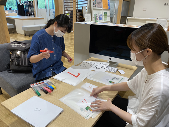 <前日も準備する3年生の八谷さん(左)と金田彩花さん(広島県立大門高等学校出身)>