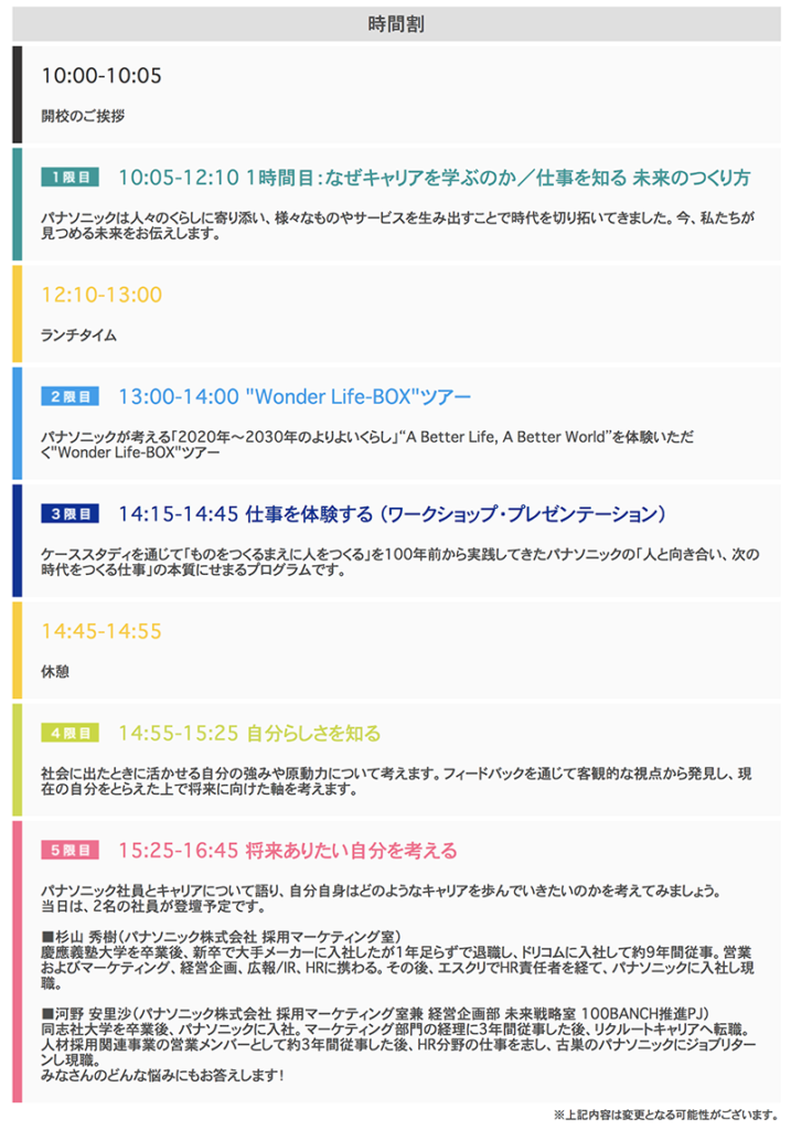 私は、9月4日(火)に開催されたキャリア大学で「パナソニック株式会社」のクラスに参加してきました。