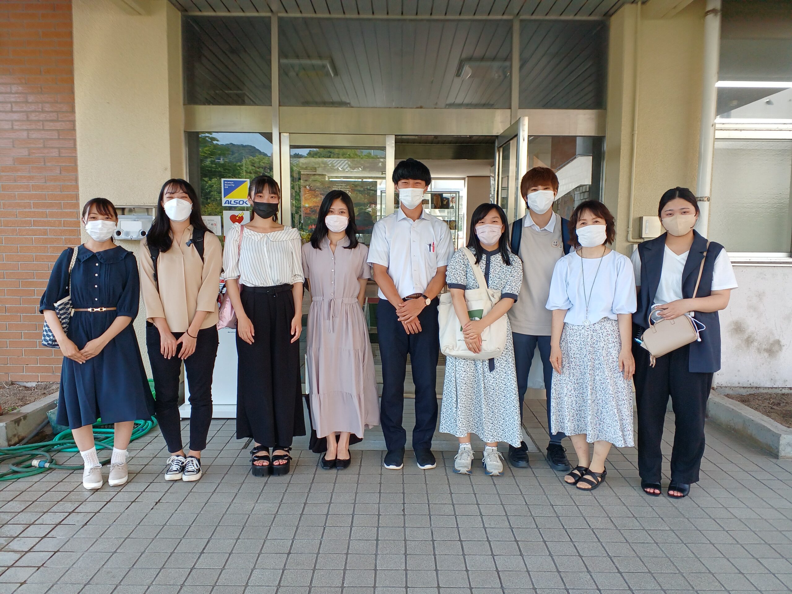 <福山市立福山高等学校の先生方(中央と右から2番目)と発達心理学研究室3年生>