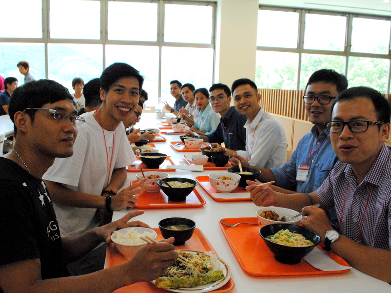 昼食です。本学のカフェテリア「どん亭彩雲」での食事は、とても好評でした。