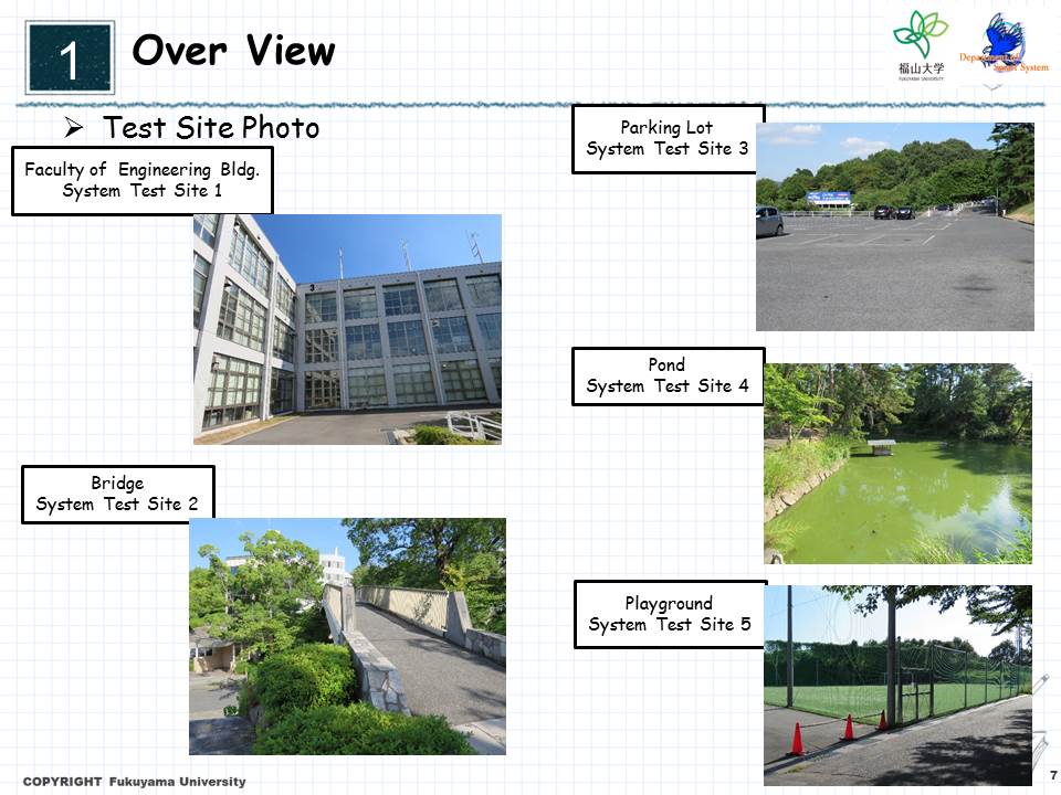 福山大学の様々な施設や地形などを実験フィールドとして利用します。