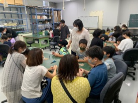 新型コロナウイルスの感染防止対策として定員を設けていたので、抽選で参加人数が絞られたそうです。選に漏れた皆さん、申し訳ございません。また次の機会を作れればと思います。さて、最初のモータが廻る仕組みの説明は少し難しかったようですが、この説明内容をヒントにして、もっとよく廻る形を研究したいという子供たちもたくさん現れ、帰り際に導線を次々と所望してくれました。