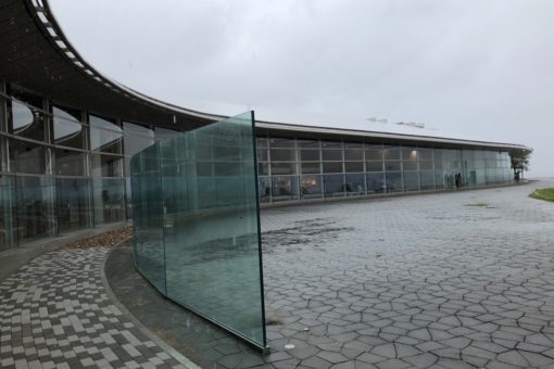 宍道湖のほとりに建つ美術館であり夕日を売りにしている美術館でもあり、湖側はガラス張りになっており、日が落ちるのを座って眺められるようになっています。