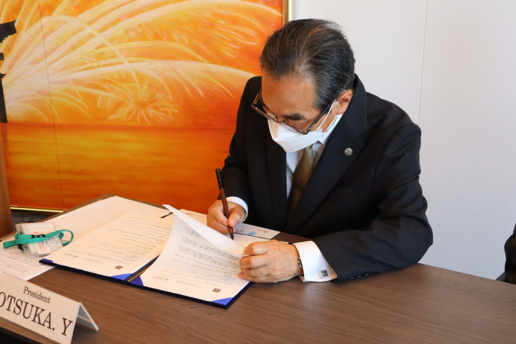 3大学の総長・学長挨拶に続き、3校間で協定書へのサイニングが行われました。