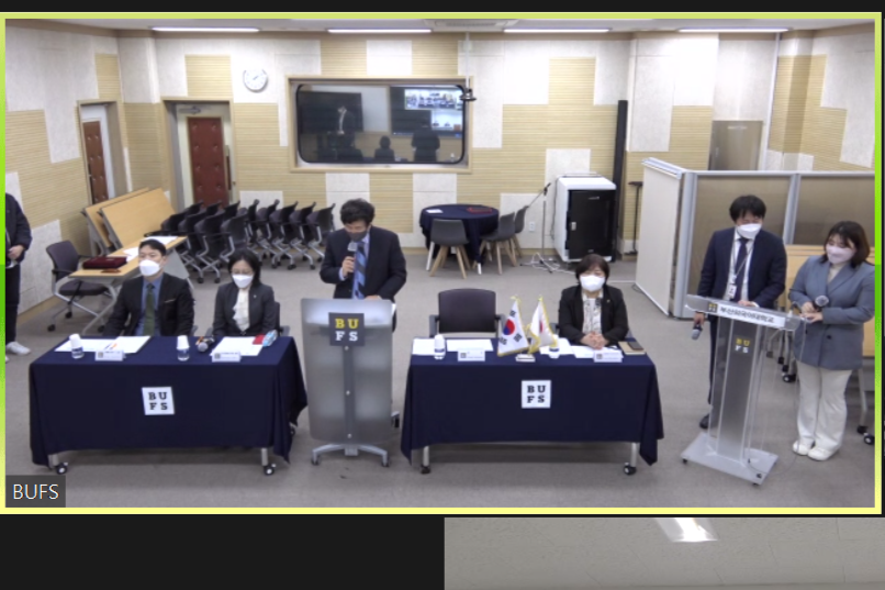 さて、11月2日(水)に日韓両言語で行われたオンライン調印式には、釜山外国語大學校から張舜興総長、鄭明淑国際交流処長、平中ゆかり日本語融合学部 教授、金泰辰国際交流チーム長等が参加されました。本学からは大塚豊学長伊丹利明副学長Bisset Ian James国際センター副センター長等が参加し、福山平成大学からは冨士彰夫学長、吉留義史副学長、渡辺清美国際教育・研究推進委員会委員長、崔銀珠福祉学科准教授が参加しました。