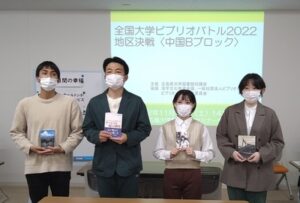 全国大学ビブリオバトル2022中国Bブロック地区決戦に、本学からメディア・映像学科3年生の高田結衣さんが出場しました。その様子を附属図書館の大谷が報告します。