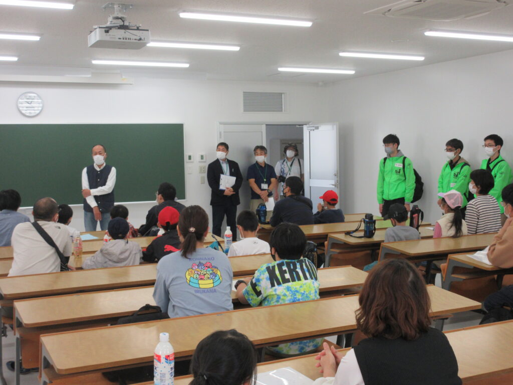 参加者は、親子連れ12組35名、地域のスタッフ3名、プロジェクトMの学生スタッフ7名(卒業生1名含む)とじいじ隊長の46名、そして因島キャンパスのスタッフと学生を加えると70数名で大変盛況でした。参加した親子連れには因島キャンパスでの楽しく驚くような学び、また学芸員資格の取得を目指して実習中の学生の皆さんにとっては見学者との対面での説明の体験と、お互いに実りあるイベントだったと思います。因島の教職員スタッフ・学生の皆さん、関係者の皆さま、ありがとうございました。