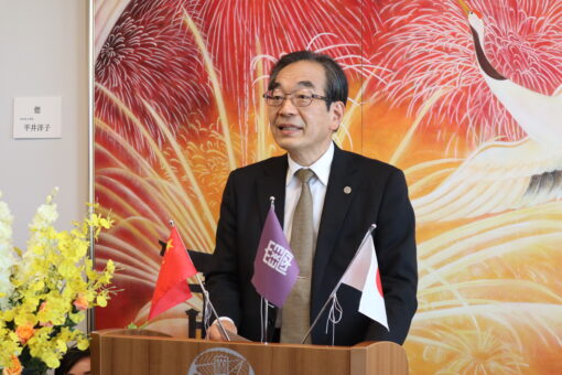 まず、劉学長より同大学によるこれまでの日本の政治・経済・歴史・社会・文化に関する総合的な研究・交流実績が紹介されるとともに、福山大学との間でも学術研究をさらに強化・深化させ、教育・文化分野における共同発展を実現し、新時代の日中関係の安定的かつ健全な発展に寄与することへの期待が述べられました。