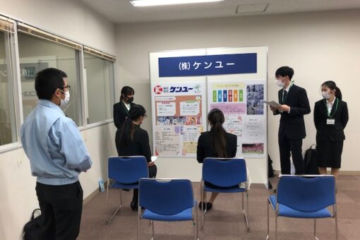 学生からは、「このような機会で発表すること、また学生目線での企業発表を聞くことができ、とてもよい経験になりました」とか「発表、疲れました!」と言いながら達成感のある笑顔を浮かべる学生もいました。「対面発表でもう少し人が呼べたら、一層ブースが盛り上がったと思います」という声もありました。