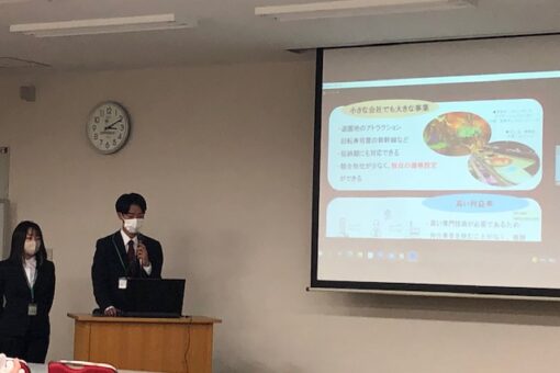 また、ある企業の社長さんからは、「取材に来たときは学生同士も緊張していたようだったが、今日はとてもよいチームワークになっている」というコメントをいただき、発表だけでなく取材から1つ1つの積み重ねが、学生たちに自信とチームワーク力を身につけたことが窺えました。