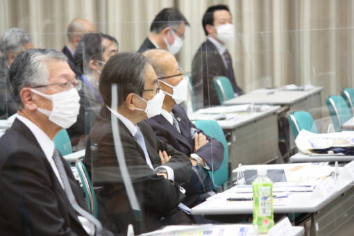 【真剣に議論に聴き入る鈴木理事長と大塚学長】