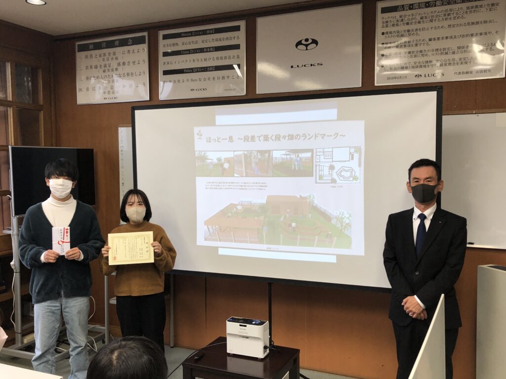 今年も夏休み期間を利用して実施され、10組が賞金を目指してコンペに応募しました。その審査結果および表彰式が、さる11月23日(水)にラックス建設の会議室にて開催されました。