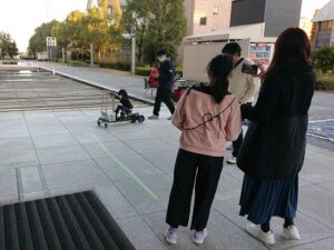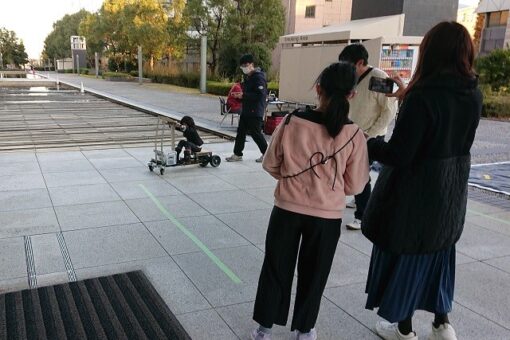 当日、自動運転のためのデータ取りがなぜかできなくなるアクシデントに見舞われましたが、急遽、自動運転をあきらめてスマホで運転する方針に切り替え、井上君や私(山之上)が遠隔運転したり、乗ったお客様に直接運転してもらったりすることで、無事、展示を行うことができました。