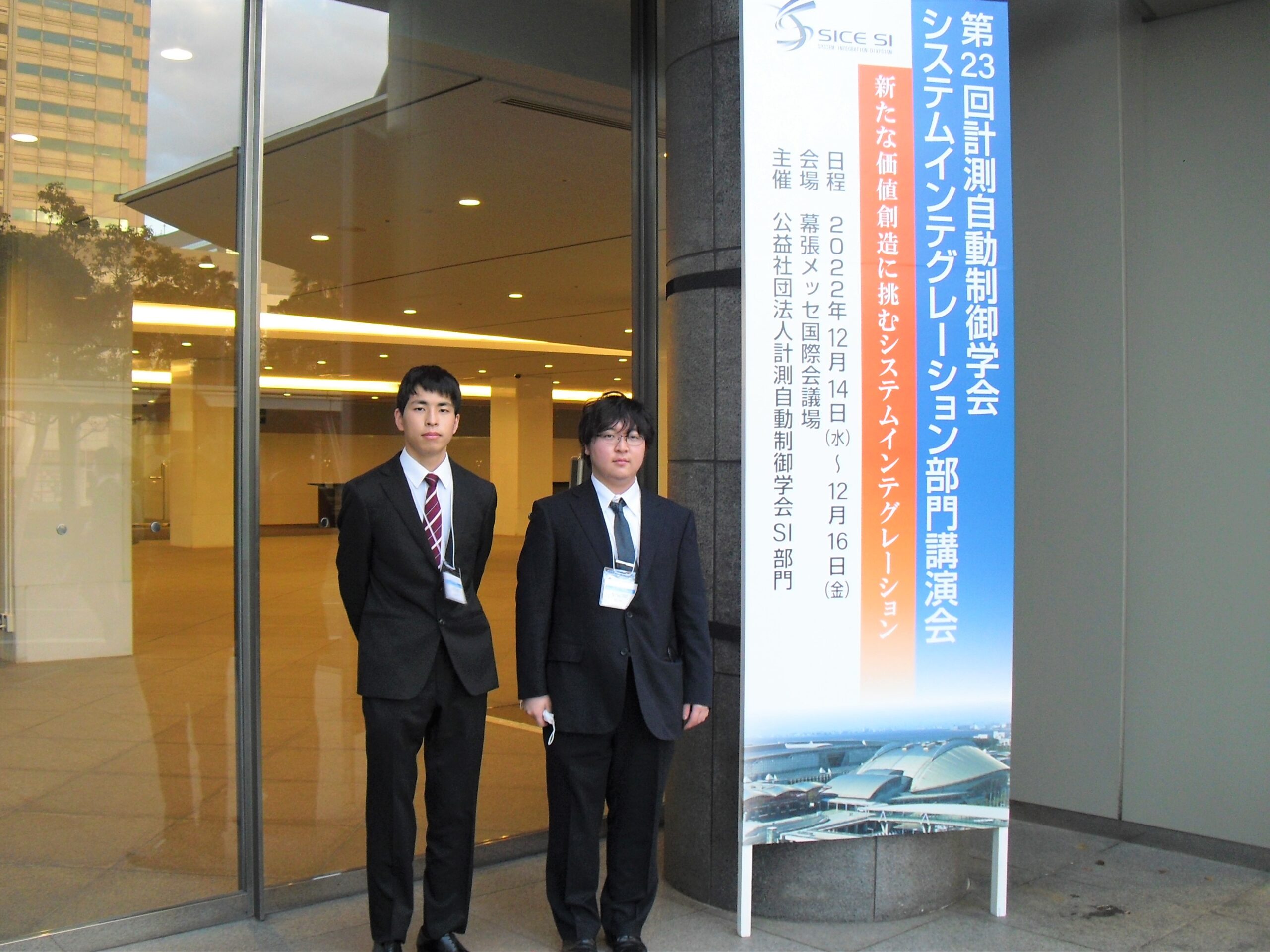 第23回計測自動制御学会システムインテグレーション部門講演会(SI2022)が、12月14日(水)~16日(金)の期間に千葉県の幕張メッセ国際会議場で開催されました。今回の学会では、工学部スマートシステム学科4年生の行平将望君、大学院1年生の村上力丸君が、インタラクティブセッションでポスター発表を行いました。この様子について、工学部スマートシステム学科(フェイスブックはこちら)の伍賀が報告します。
