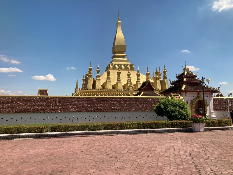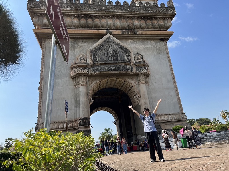 ラオスを発つ最後の日に、学生たちはビエンチャンの名所のタートルアン(金の仏塔)やパトゥーサイ(凱旋門)、そしてベトナム戦争で手足を失った方に義足などの支援をする非営利団体Cope Visitor Centreなどを訪問しました。12月は乾季に当たり、天気が良い日が多く、この日も気持ちの良い青空でした。