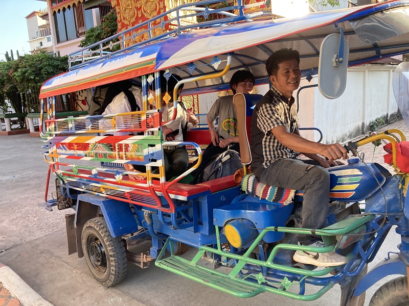 最後にはラオスの伝統的な移動手段であるトゥクトゥクも体験しました。3年前の研修と同様にみんなでトゥクトゥクに乗ってワッタイ国際空港まで行きました。さすがに私たちを除いてトゥクトゥクで空港まで来ている方はおりませんでした。最後の最後までラオスを堪能した旅となりました。