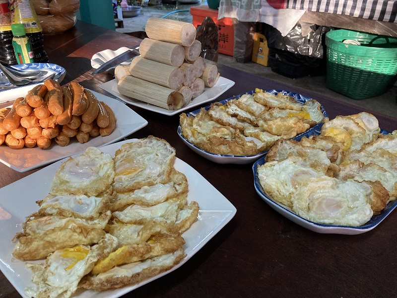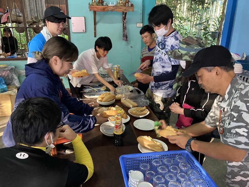LAODIでの研修中に宿泊した施設は家族で経営しており、お母さんが、毎日、フランスパンに卵やお肉を挟めたもの、そしてココナッツの入った少し甘めのチマキなどを朝ごはんとして作ってくれました。ラオスにはかつての植民地時代の宗主国であるフランスの文化の影響が見られ、フランスパンにコーヒーといった西洋の食事も融合しているので面白いです。LAODIでの作業の力の源はこれらの朝ごはんでした。みんな朝ごはんしっかり派。