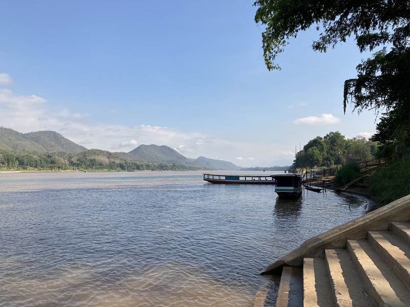 それではここから二つの街の様子をお伝えします。まずはルアンパバーンです。とっても素敵な街でした。ルアンパバーンは街全体がユネスコが指定した世界遺産です。観光地ということもあり、世界各国から多くの観光客が来ていました。それでも混雑した様子はなく、観光客の皆さんは、ゆっくりとした時間の中で街を楽しんでいる様子でした。ルアンパバーンにはメコン川とナムカン川という2つの大きな川の合流地点があります。その川の見えるレストランで昼食をとりました。近くでは岩の上から川に飛び込む子供たちがおり、とっても楽しそうでした。日本なら「危ないからやめなさい!」と親の声が聞こえてきそうです。