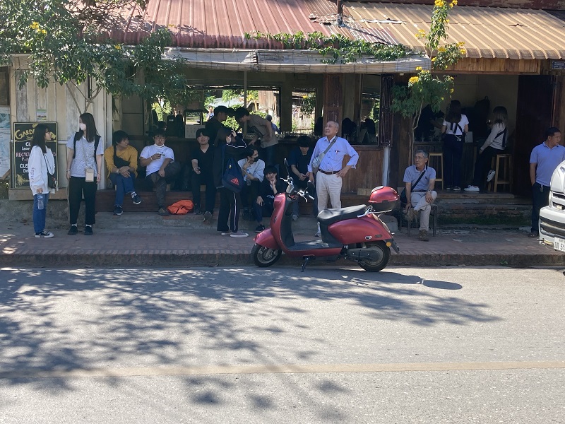 ルアンパバーンを散策する途中、何度か同じコーヒー店で休憩しました。日本人夫婦が経営するお店で、オーナーはコーヒー農園のコンサルタントもされていることもあり、選ばれた豆を丁寧に挽いて作ったおいしいコーヒーでした。17名で訪問しましたが、朝からたくさんのコーヒーを作っていただきありがとうございました。