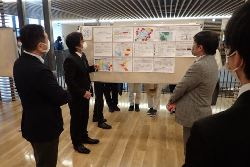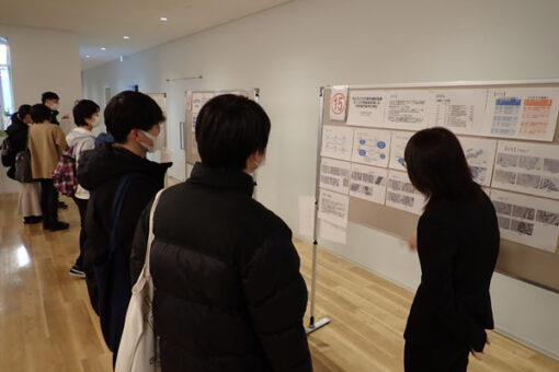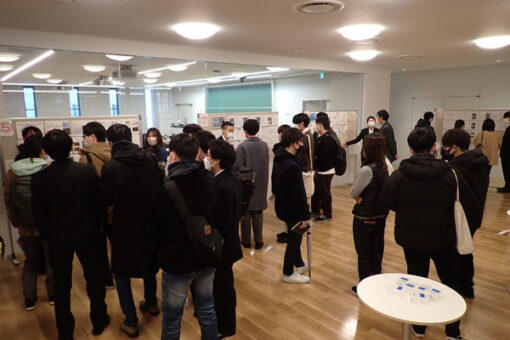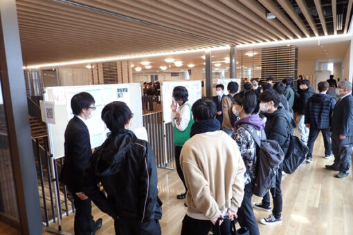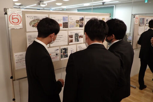 ポスター発表は、発表者と聴き手が直接討議しやすいという良さがありますが、それだけ踏み込んだ質問も飛んできます。学生達にとって緊張する時間だったことでしょう。しかし、こうして様々な人と議論することは、思わぬ気づきや課題解決のヒントを得られる貴重な機会になります。受けた指摘や意見を今後の改善につなげていきましょう。