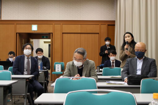 パネル報告が終了した後、パネルディスカッションが行われました。参加者は、上記の基調講演者の細川允史様とパネル報告者3名のほかに、池田圭次様(福山市経済環境局長)と丸竹義則様(株式会社エブリイホールディングス社長室長)の6名でした。ディスカッション全体の進行は、福山大学経済学部の張楓教授が担当し、活発な議論が行われました。