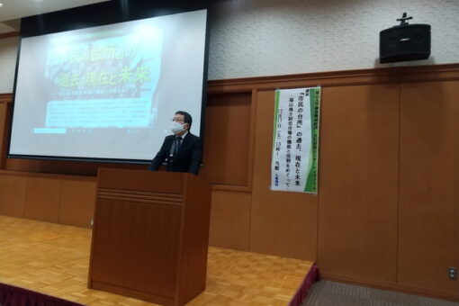 まず、大塚豊学長と経済学部長の楠田昭二教授による開会挨拶の後、細川允史様(卸売市場政策研究所代表)から「第三段階における卸売会社の経営持続性の考察」と題する基調講演が行われました。