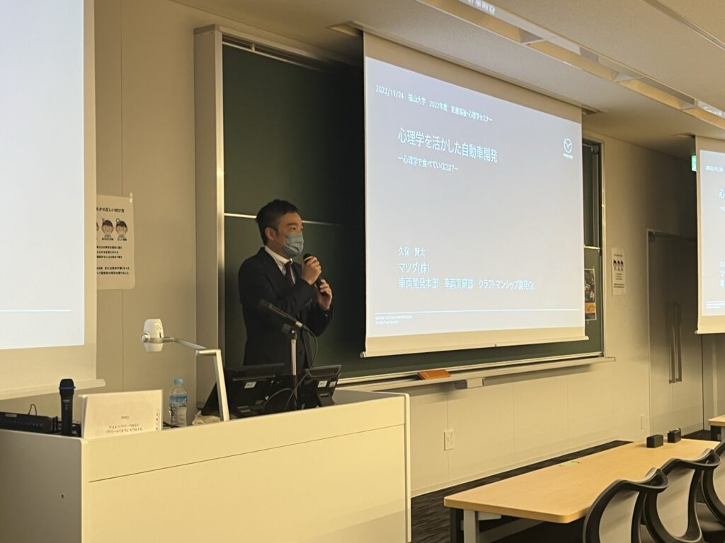 久保先生には、産業領域で心理学がどのように活かされているのかを「心理学を活かした自動車開発-心理学で食べていくには?-」というテーマでご講演いただきました。本日はその様子をご報告いたします。