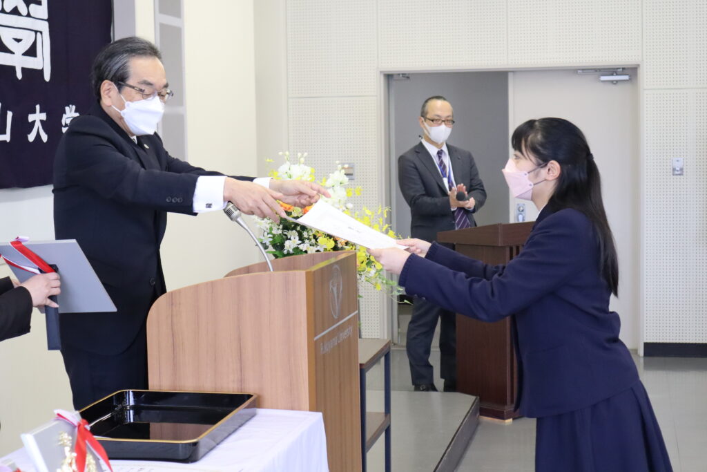 全員をお招きしたいところでしたが、コロナが完全に収束していない中、大賞等を受賞された一部の方に限定して、本学で1月18日(水)に授賞式を開催し、大塚学長より賞状、トロフィー及び副賞を授与しました。受賞された皆さん、おめでとうございました!なお、審査委員長の講評を本ブログの最後に掲載いたします。
