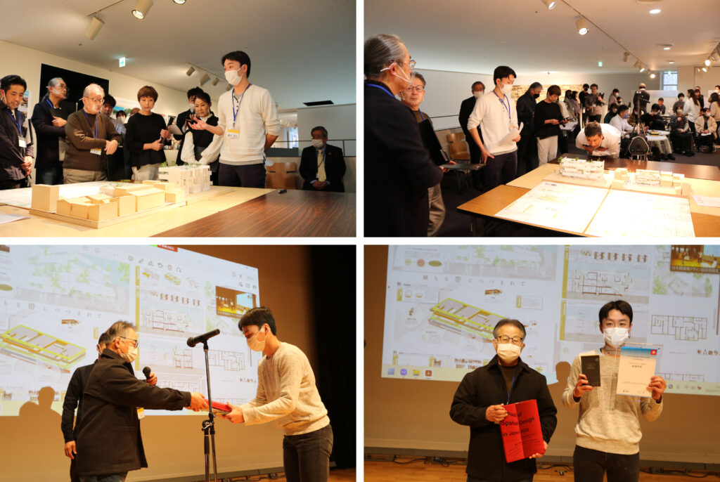二次審査はすごく緊張しましたが、模型表現・プレゼンシートは特に力を入れて作ったので、そこがプラスに評価されたところが嬉しかったです。また、2日間のコンペ審査期間は、他大学からの応募者の模型表現やプレゼンテーション、プロの建築家の先生方からのアドバイスがとても刺激になり、自身の今後の課題も浮かびあがってきました。このコンペを通して頂いたアドバイスや気づいたことを、これからの自身の設計に反映させて、さらに成長できるように頑張りたいです。